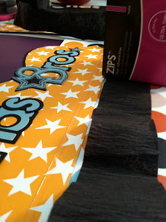 I used my friend's Gypsy and her Hannah Montana cart to cut a title. I glued the title down and then doodled around the "J" and the "B."